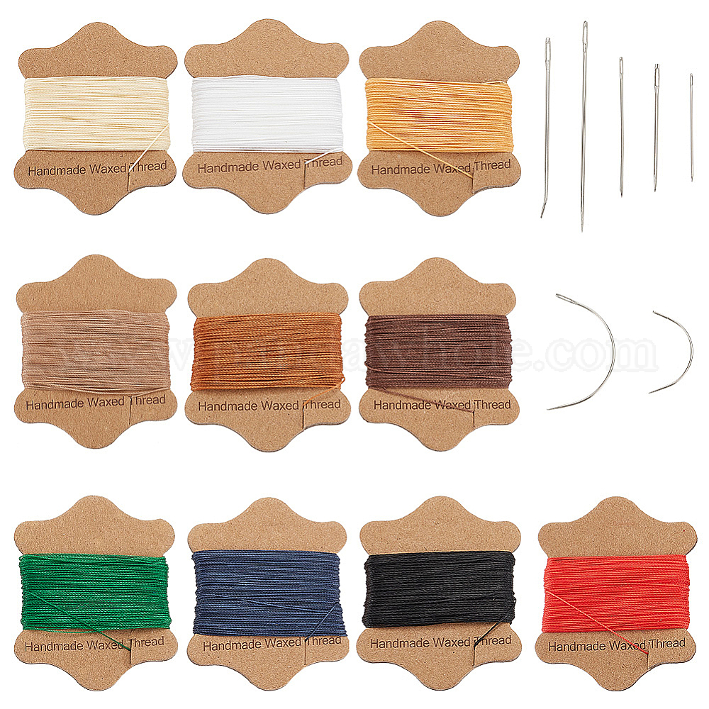 10 карты 10 цвета круглые вощеные нейлоновые шнуры наборы, с 1 набором тонких игл из углеродистой стали и кожи