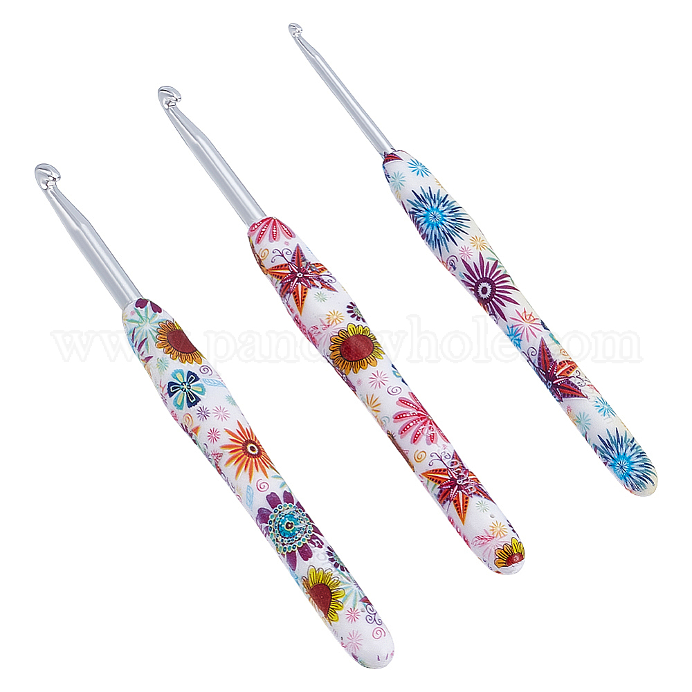 3шт 3 стили алюминиевые крючки для вязания, с ручками из термопластичной резины, цветочным узором