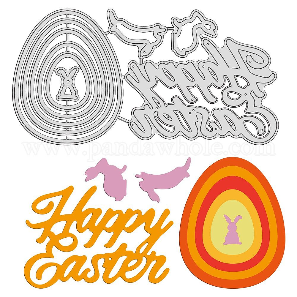 • Egg Углеродистая сталь разрезает трафареты, для diy scrapbooking / фотоальбом, декоративная тисняющая бумажная карточка, матовый цвет платины, пасха тема шаблон, 6.4x12.6x0.08 см