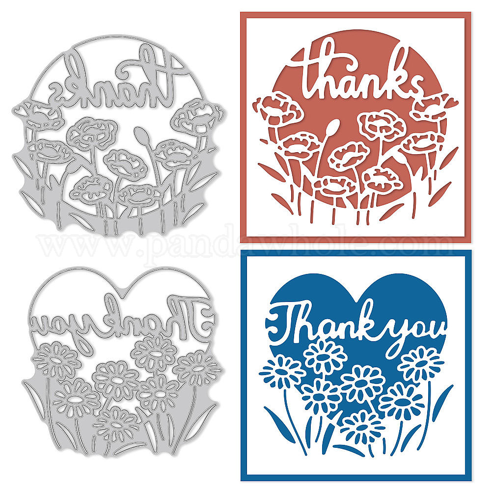 • Цветок Globeland 2 шт 2 стили трафареты для штампов из углеродистой стали, для diy scrapbooking, Фотоальбом, декоративное тиснение, бумажная карточка, матовый цвет платины, сердце и плоский круглый со словом спасибо, цветочный узор, 8.7~9.2x9.2~9.7x0.08 см, 1 шт / стиль