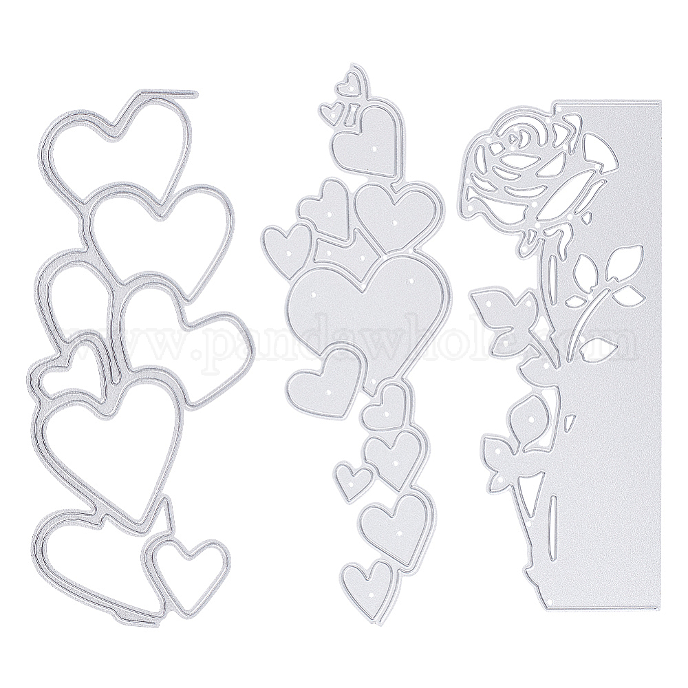 3шт 3 стили углеродистая сталь режущие штампы шаблоны своими руками, для декоративного тиснения бумажной карты своими руками, матовый цвет платины, Сердце & цветок