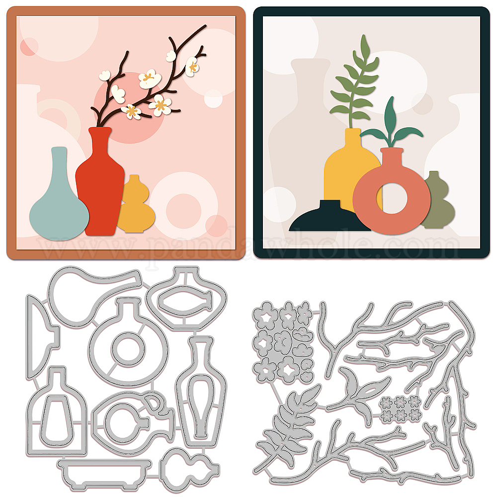 2 шт 2 стили трафареты для штампов из углеродистой стали, для diy scrapbooking, Фотоальбом, декоративная бумага для тиснения, цвет нержавеющей стали, ваза и цветочный узор