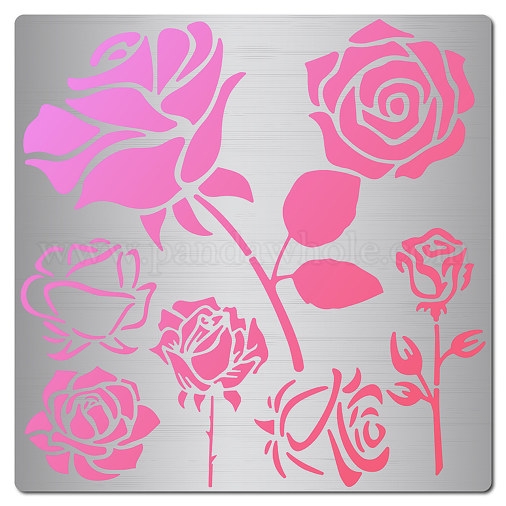 • Цветок Трафареты для штампов из нержавеющей стали, для diy scrapbooking / фотоальбом, декоративная тисняющая бумажная карточка, матовый цвет нержавеющей стали, роза, 16x16 см