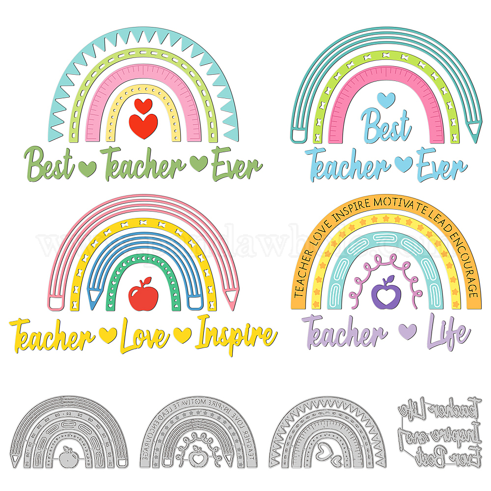 4 шт. 4 стили тема дня учителя углеродистая сталь режущие штампы трафареты, для diy scrapbooking, Фотоальбом, декоративная бумага для тиснения, цвет нержавеющей стали, шаблон радуги