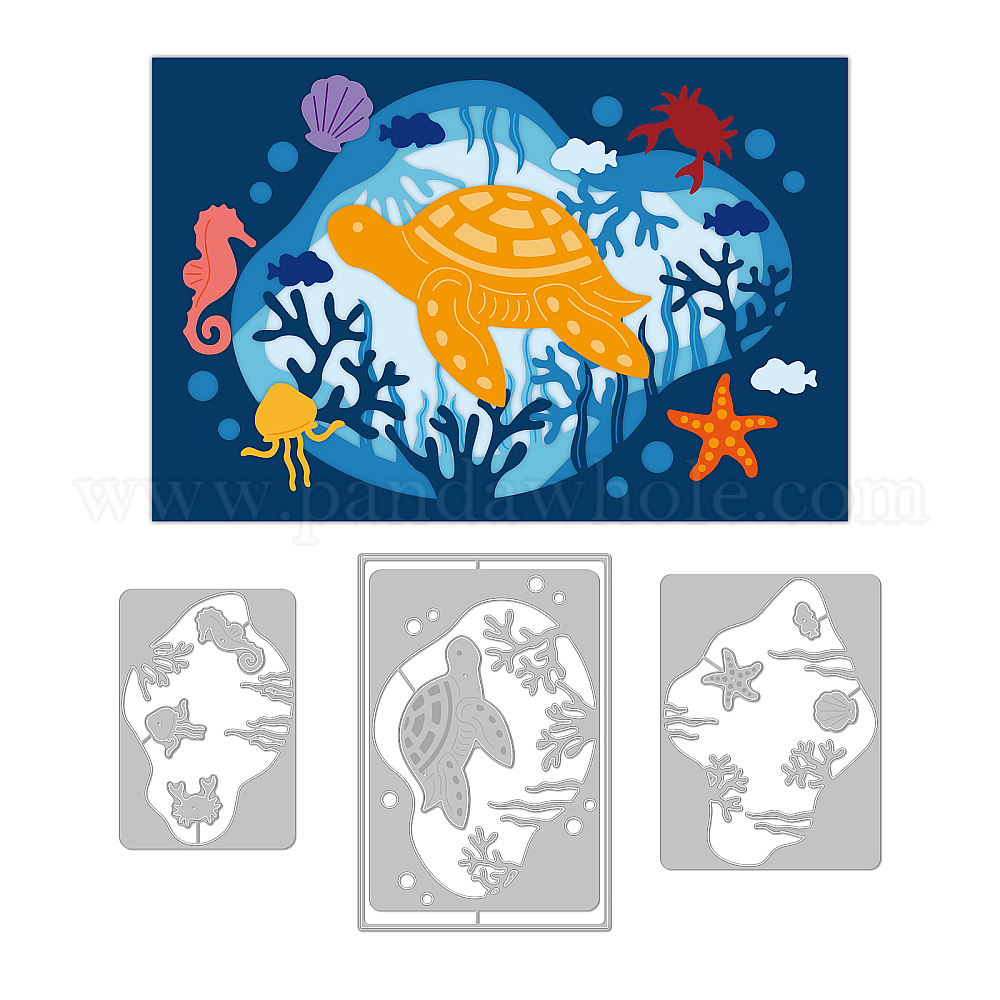 • Other Animal Трафареты для резки углеродистой стали на тему океана, для diy scrapbooking, Фотоальбом, декоративная бумага для тиснения, цвет нержавеющей стали, морские животные, 72~103x105~153x0.8 мм, 3 шт / комплект