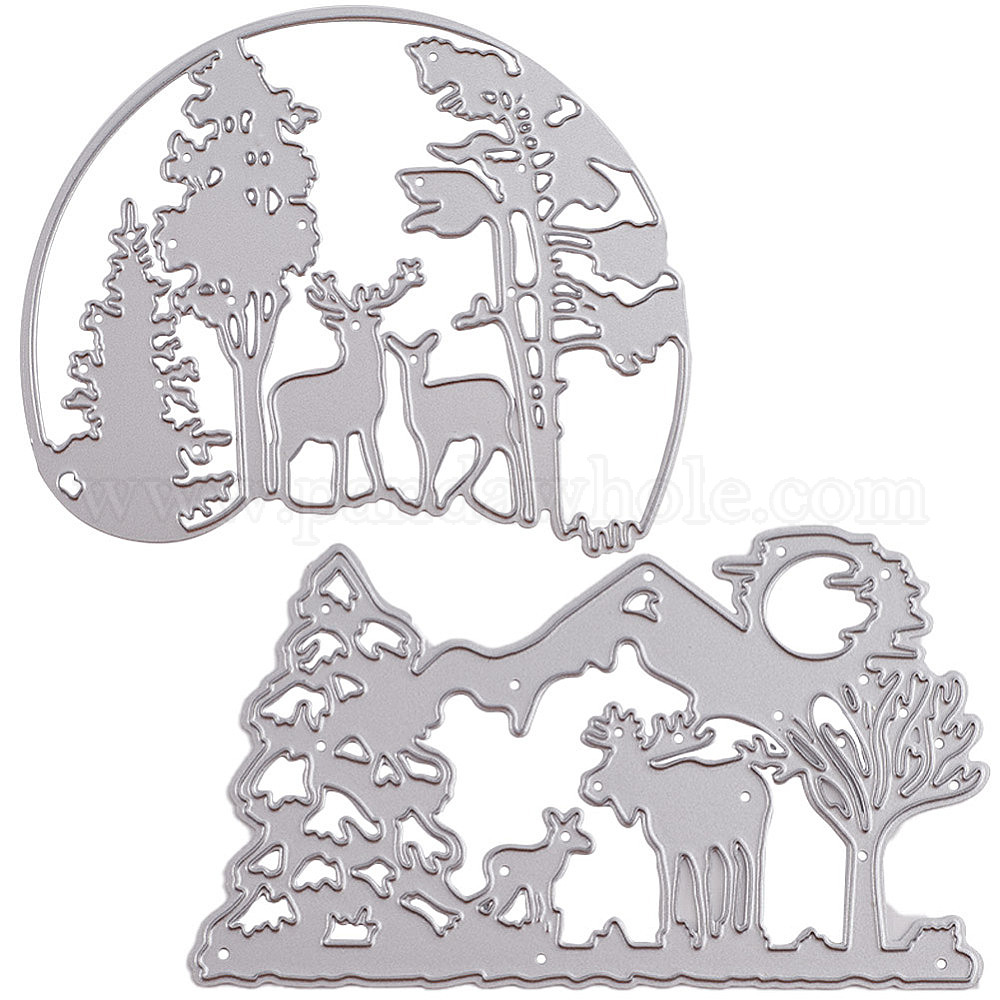 2шт 2 стили лесная тема углеродистая сталь трафареты для резки, для diy scrapbooking, Фотоальбом, декоративная бумага для тиснения, цвет нержавеющей стали, Узор оленя