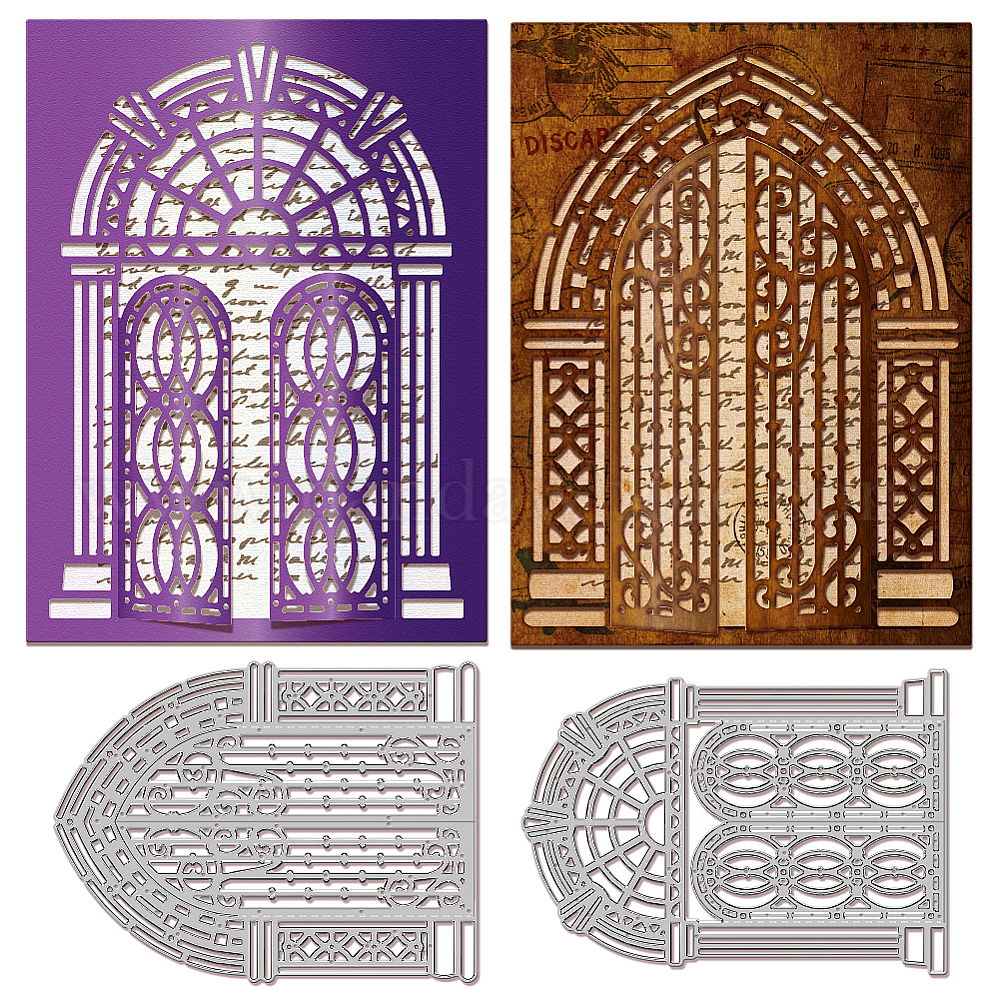 • Другие Трафареты для резки штампов из углеродистой стали в стиле ретро, Шаблон для изготовления бумажных карточек с декоративным тиснением для скрапбукинга своими руками, художественный промысел, дверь, 140~141x101~106x0.8 мм, 2 шт / комплект