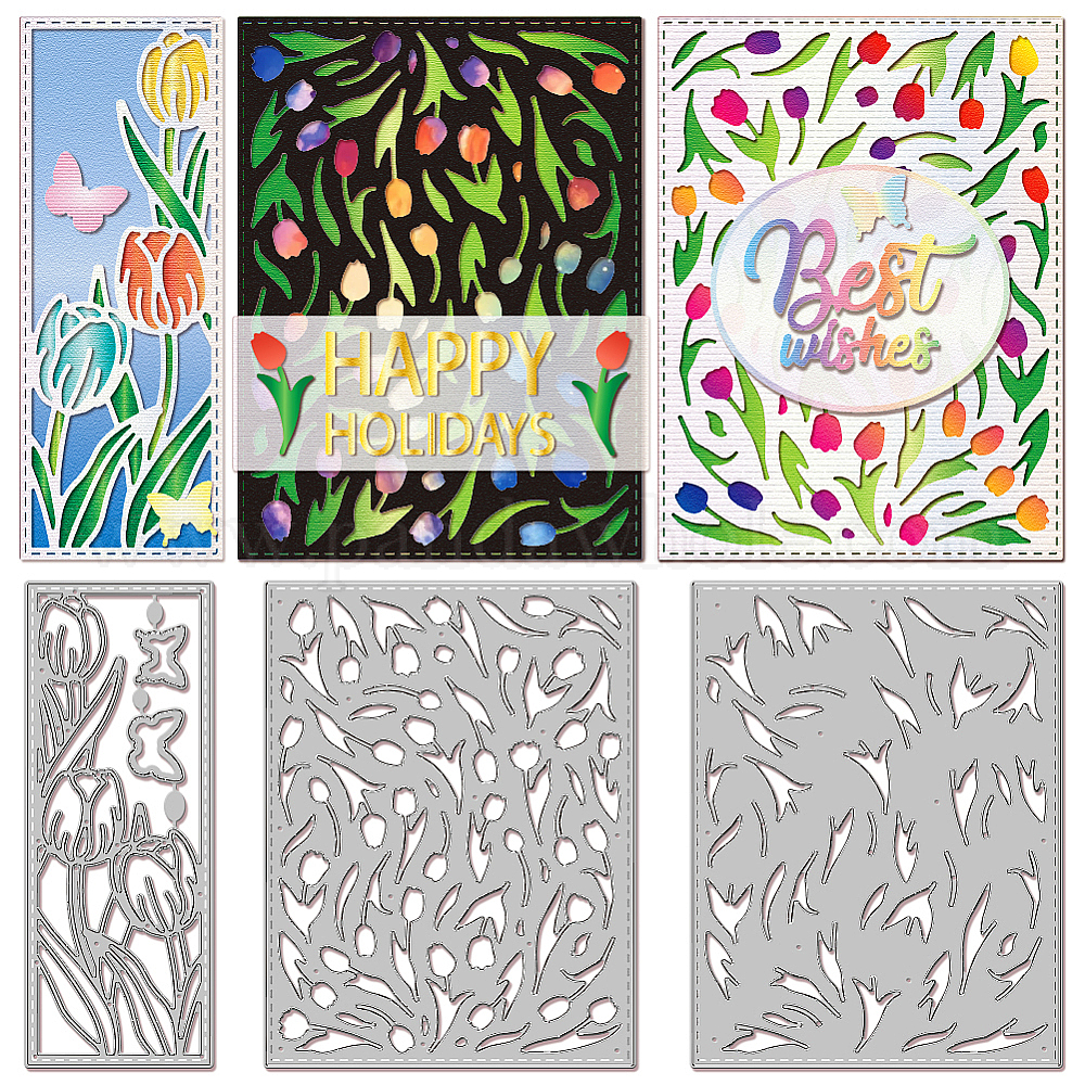 • Цветок Углеродистая сталь разрезает трафареты, для diy scrapbooking, Фотоальбом, декоративная бумага для тиснения, форма для поздравительных открыток, цветок, 56~109x142x0.8 мм, 3 шт / комплект