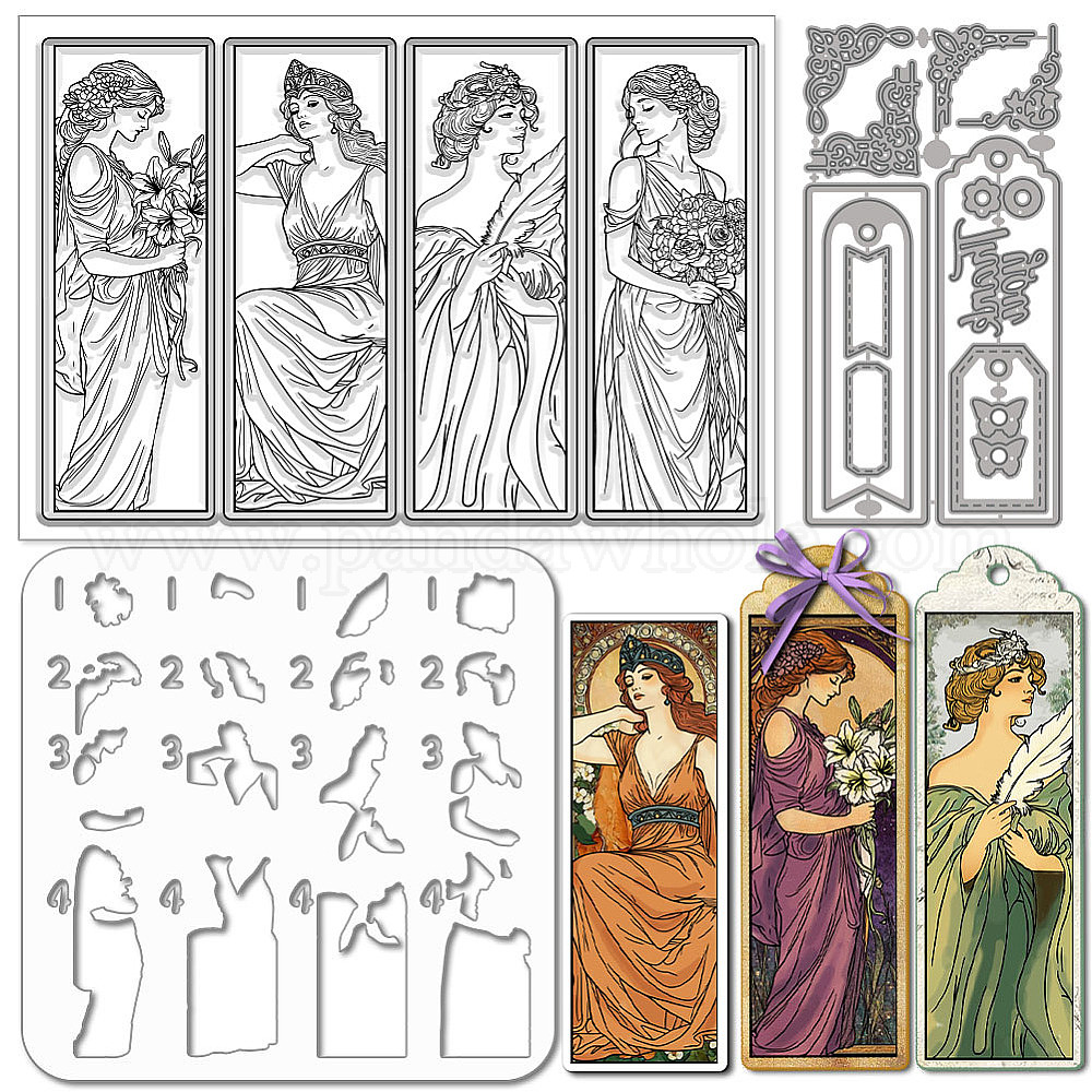 1закладка для книг с ангелом на тему ПК, трафареты для резки из углеродистой стали, для diy scrapbooking, Фотоальбом, декоративная бумага для тиснения, с 1прозрачными штампами из ПВХ и 1трафаретами для рисования из ПК