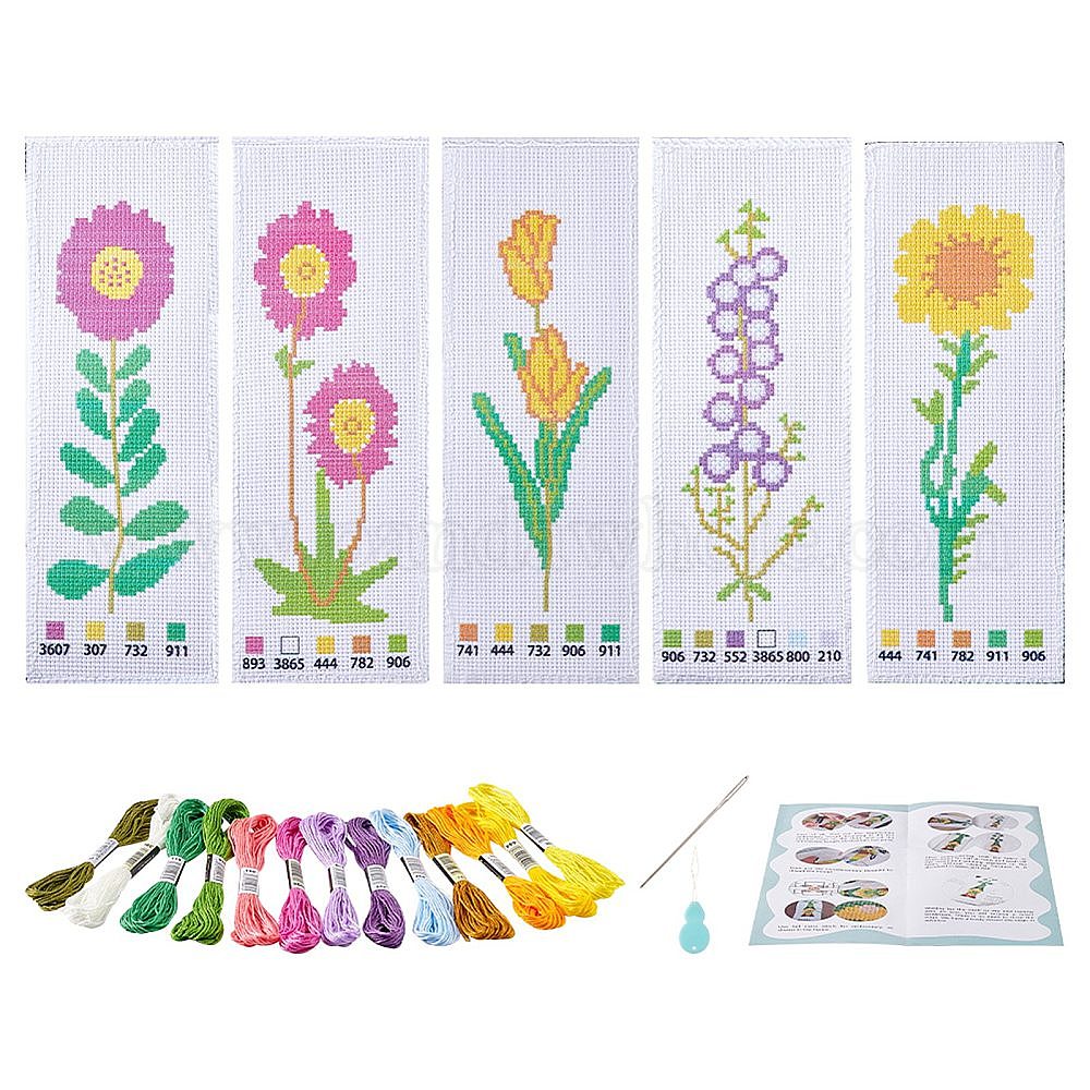 • Цветок Набор для вышивки крестиком закладки своими руками, с нитками для вышивания и хлопчатобумажной тканью, иглой и нитковдевателем, цветок, 1 мм, нитки: 13 цвета