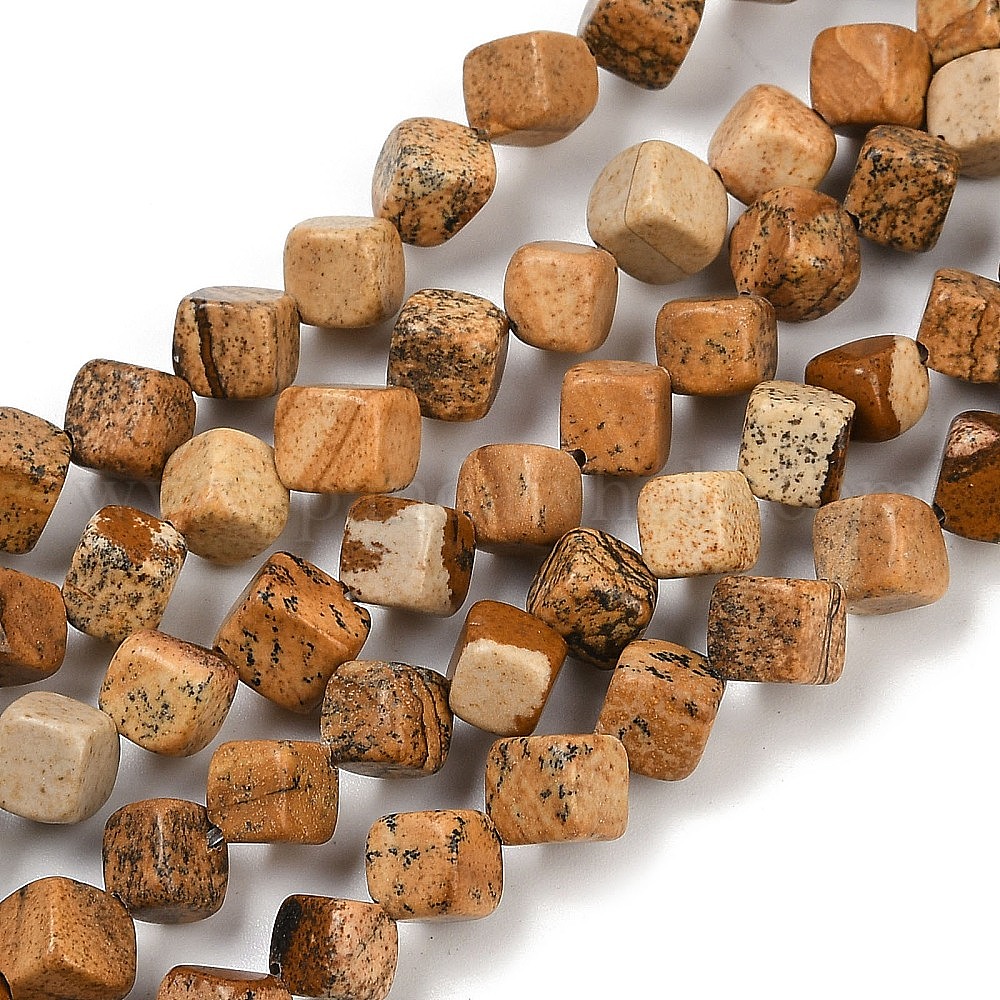 • Пейзажный Джаспер Естественного изображения яшмы бисер нитей, кубические, 7.5~8.5x6.5~8.5x5.5~6.5 мм, отверстие : 0.7 мм, около 52~56 шт / нитка, 15.16~15.87'' (38.5~40.3 см)