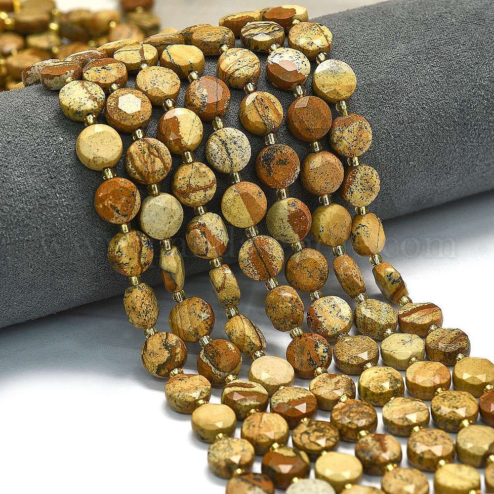 Естественного изображения яшмы бисер нитей, граненый шестиугольный разрез, плоско-круглые, с бисером