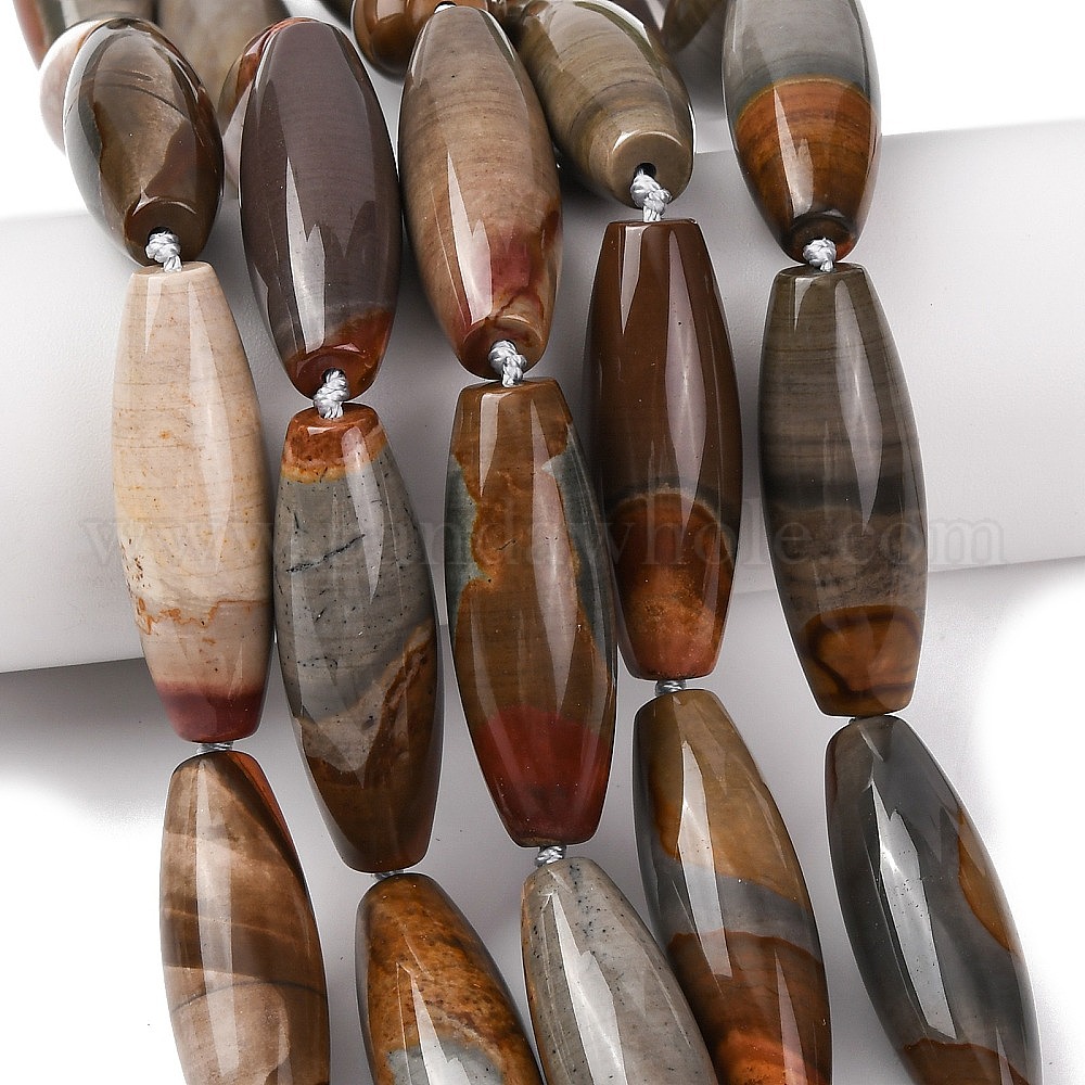 • Пейзажный Джаспер Янтарь, рис, 40.5~41.5x14~14.5 мм, отверстие : 1.2 мм, около 9 шт / нитка, 15.20''~15.55'' (38.6~39.5 см)