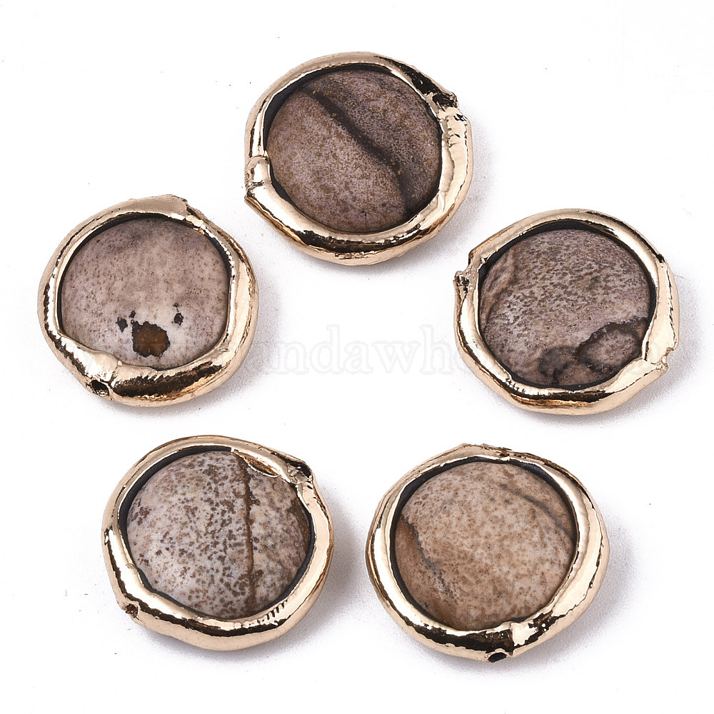• Пейзажный Джаспер Естественного изображения яшмы, с кромкой из полимерной глины, покрытой светом, плоско-круглые, 17~19x17~18x5~7 мм, отверстие : 1.2 мм