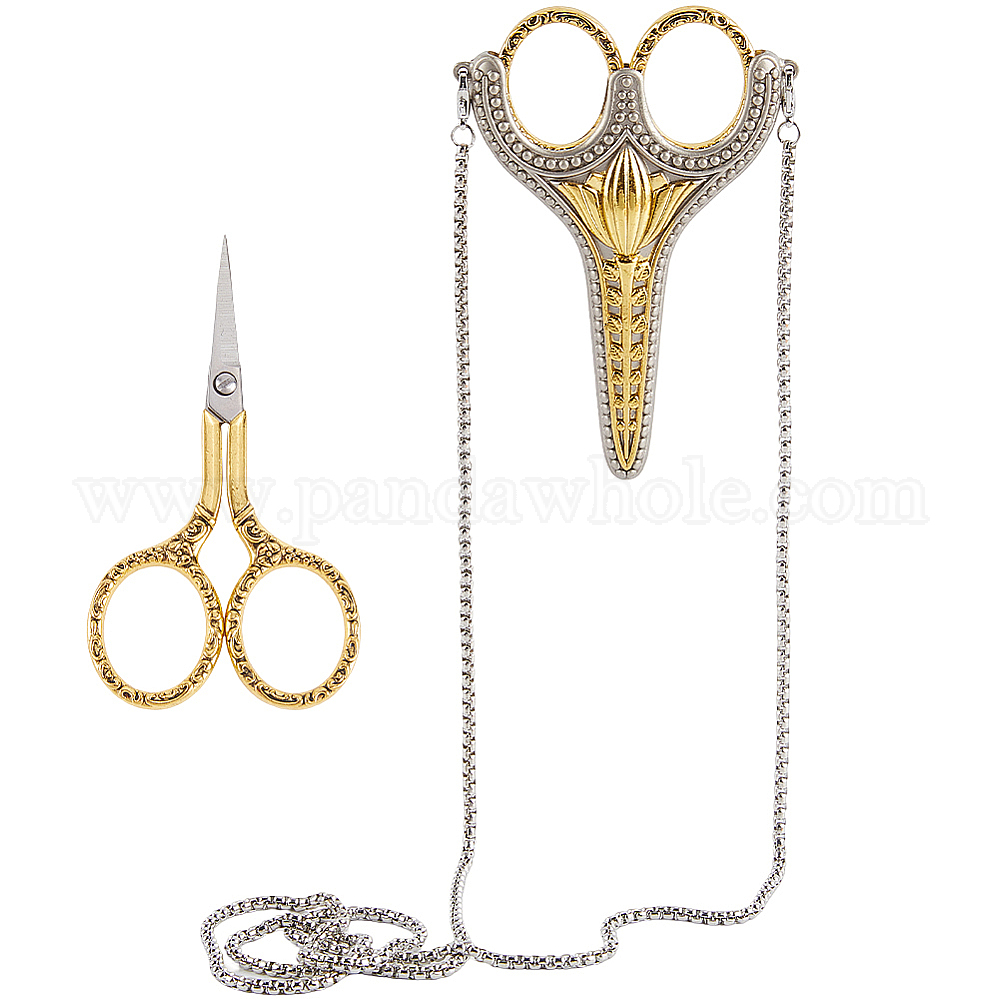 • Античное Золото Винтажные швейные ножницы из нержавеющей стали и железа с цепочкой для рукоделия, античное золото , 19.09 дюйм (48.5 см)