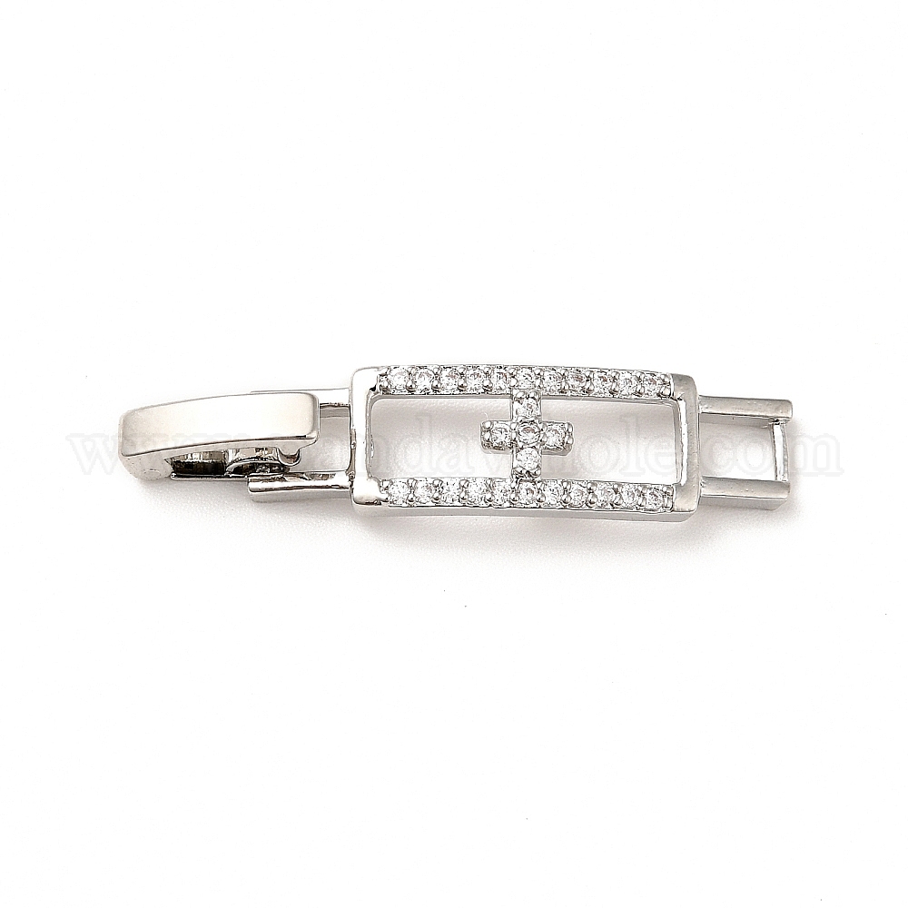 Прямоугольный с поперечным покрытием из латуни микро паве прозрачный кубический цирконий застежки ремешка для часов, без кадмия и без свинца, долговечный