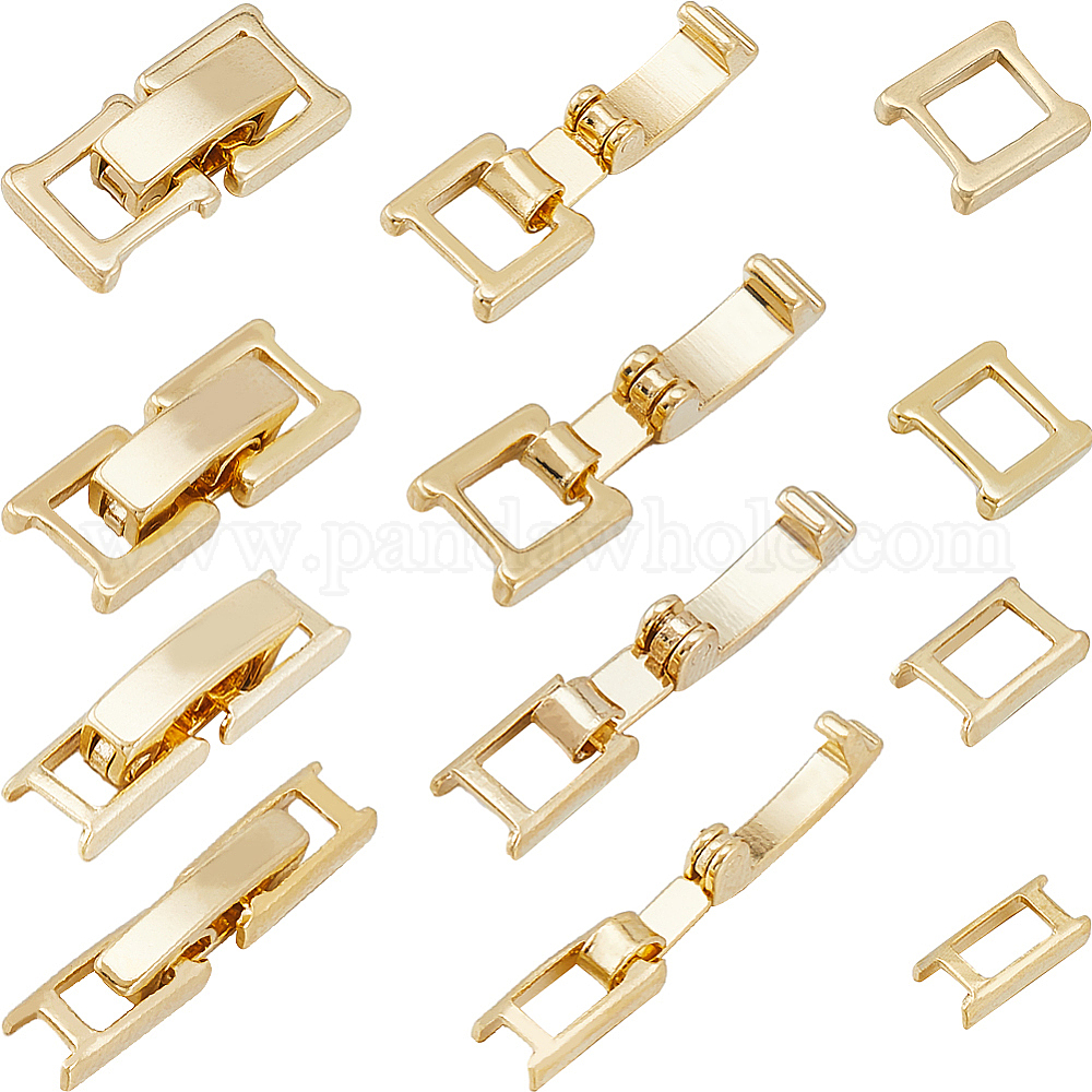 • Настоящее золото 24K 12 шт 4 стили экологически чистые латунные застежки для часовых ремешков, долговечный, реальный 24 k позолоченный, 15~17x3.5~7.5x4 мм, 3 шт / стиль