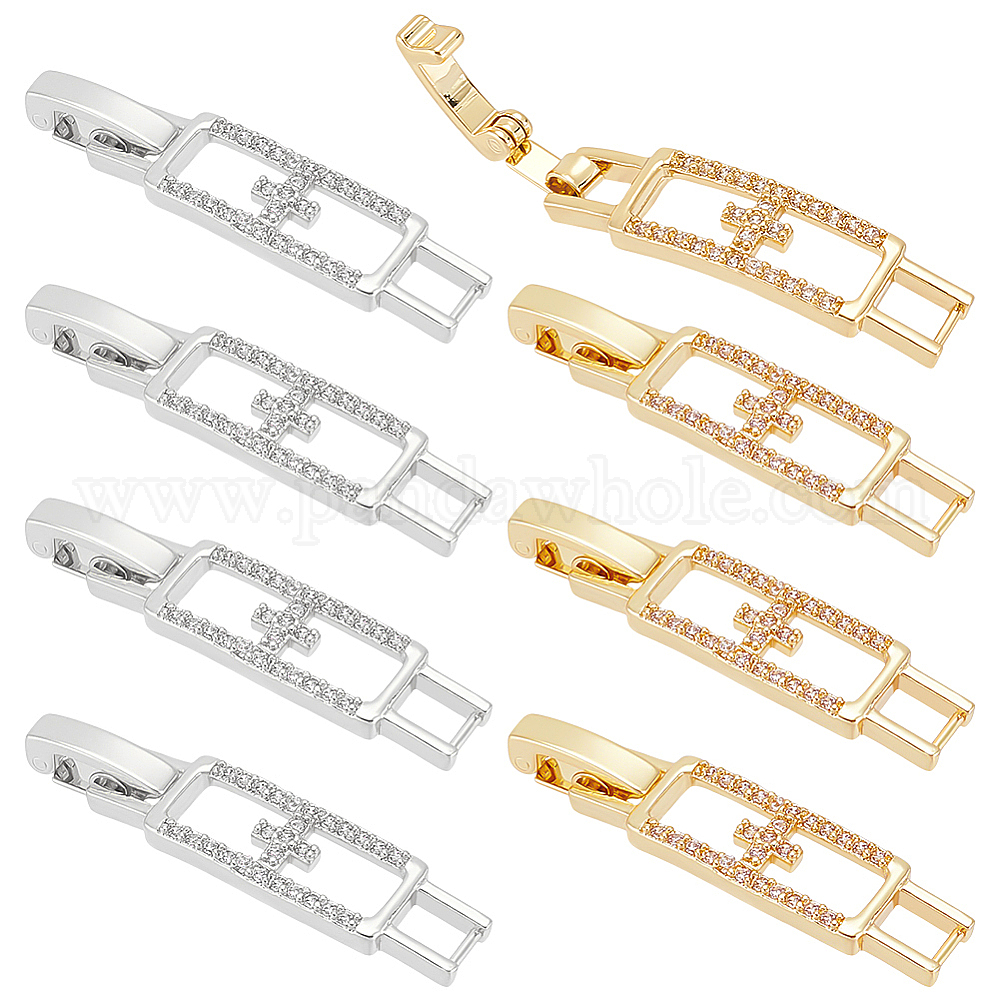 8 шт. 2 цвета прямоугольник с крестообразной рейкой покрытие латунь микропаве прозрачный кубический цирконий застежки для часового ремешка, без кадмия и без свинца, долговечный