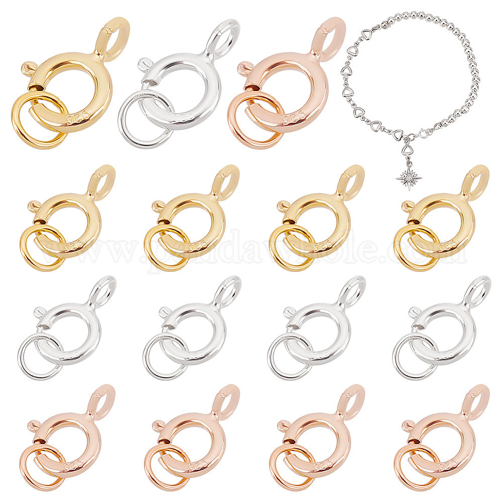 15шт 3 цвета 925 пружинные кольца из стерлингового серебра, с прыжковых колец