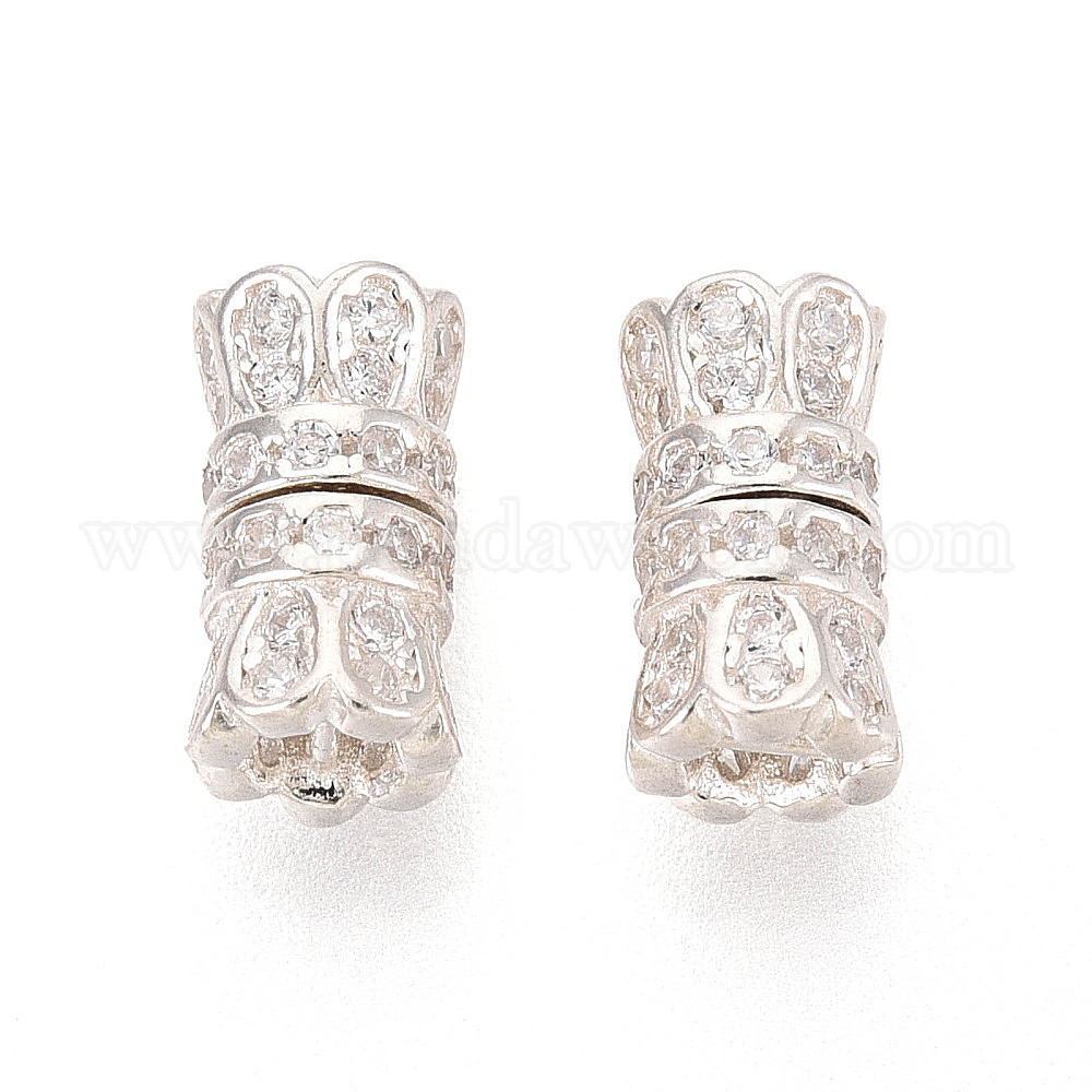 925 Застежки-винты из стерлингового серебра и прозрачного кубического циркония, цветок, с печатью 925