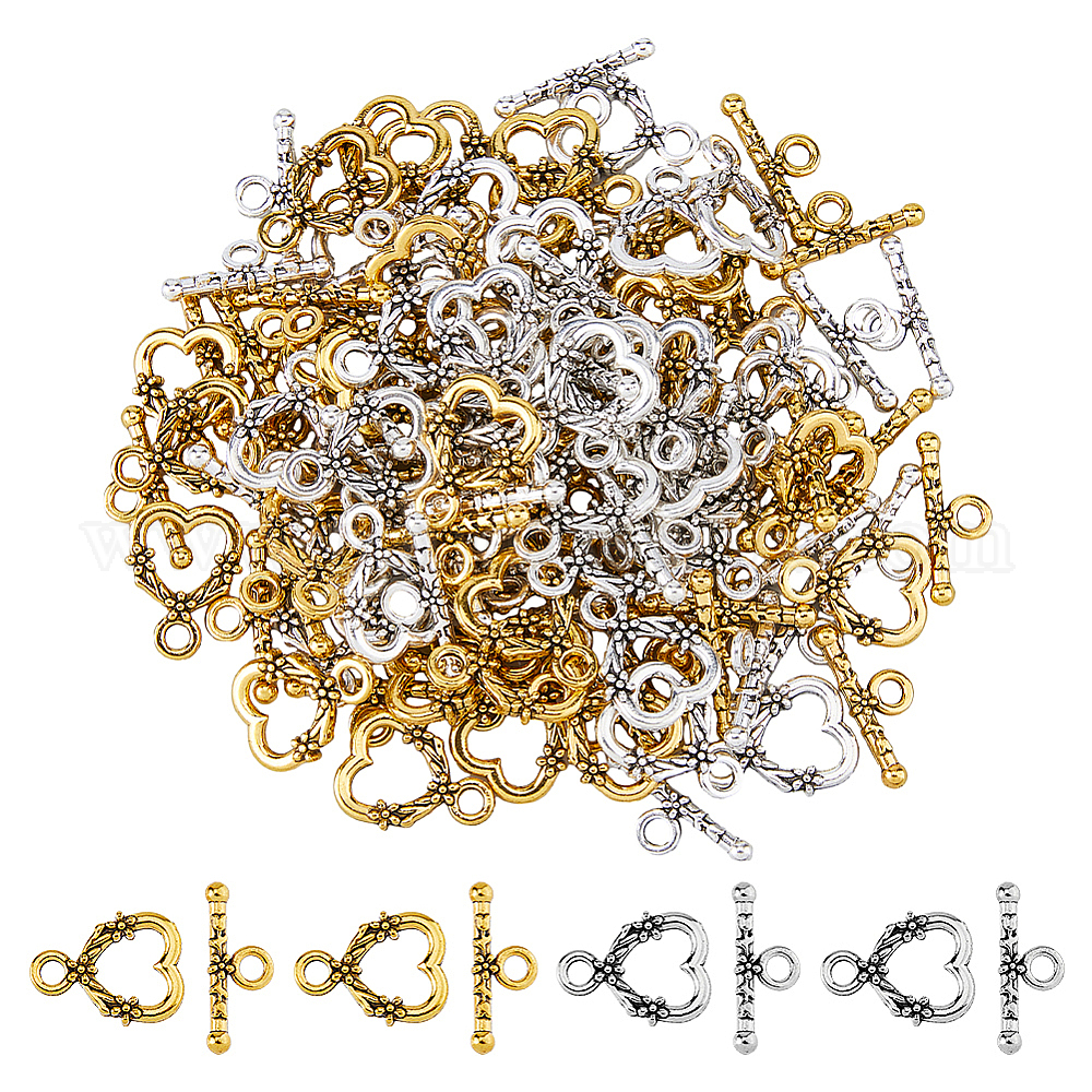 сердце: ширина около 14 мм, 18.5 мм длиной, бар : 21 mm длиной, отверстие : 3 мм, 30 шт / цвет, 2 цветов, 60 шт;