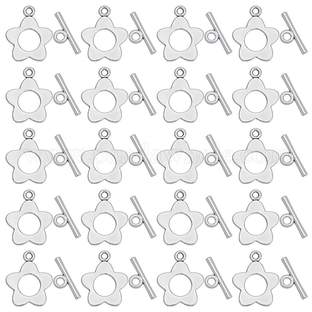 • Античное Серебро 100шт. застежки-тоггл в тибетском стиле с цветочным узором, без свинца и без кадмия, античное серебро, Цветок: 16x20 мм, бар : 16 mm длиной, отверстие : 2.5 мм