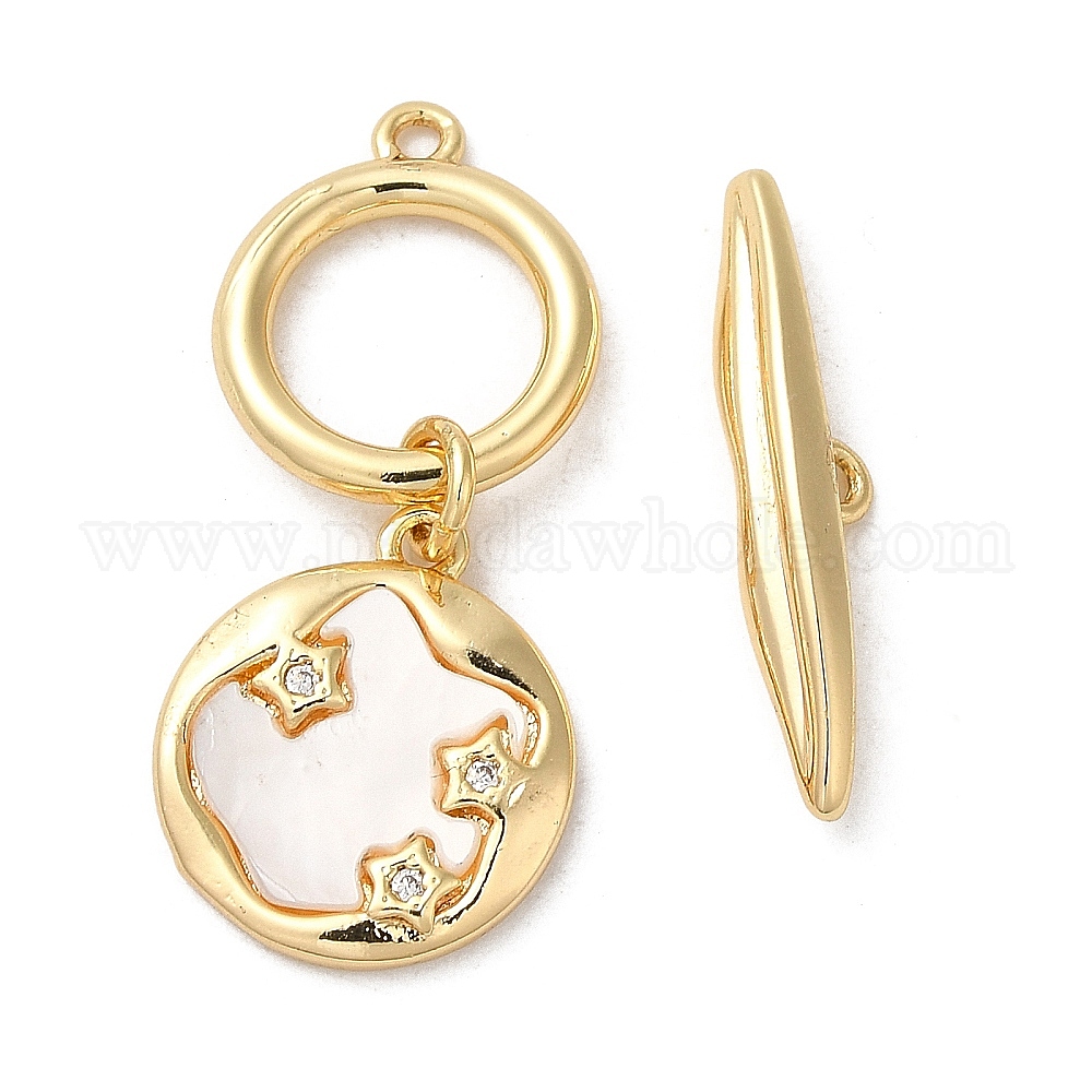 • Золотой Реечное покрытие латунь микро паве прозрачный кубический цирконий застежки-тоггл, с оболочкой, без кадмия и без свинца, долговечный, золотые, бар: 21.5x4.5x4 mm, Кольцо: 29x13x2 mm, отверстие : 1.2 мм