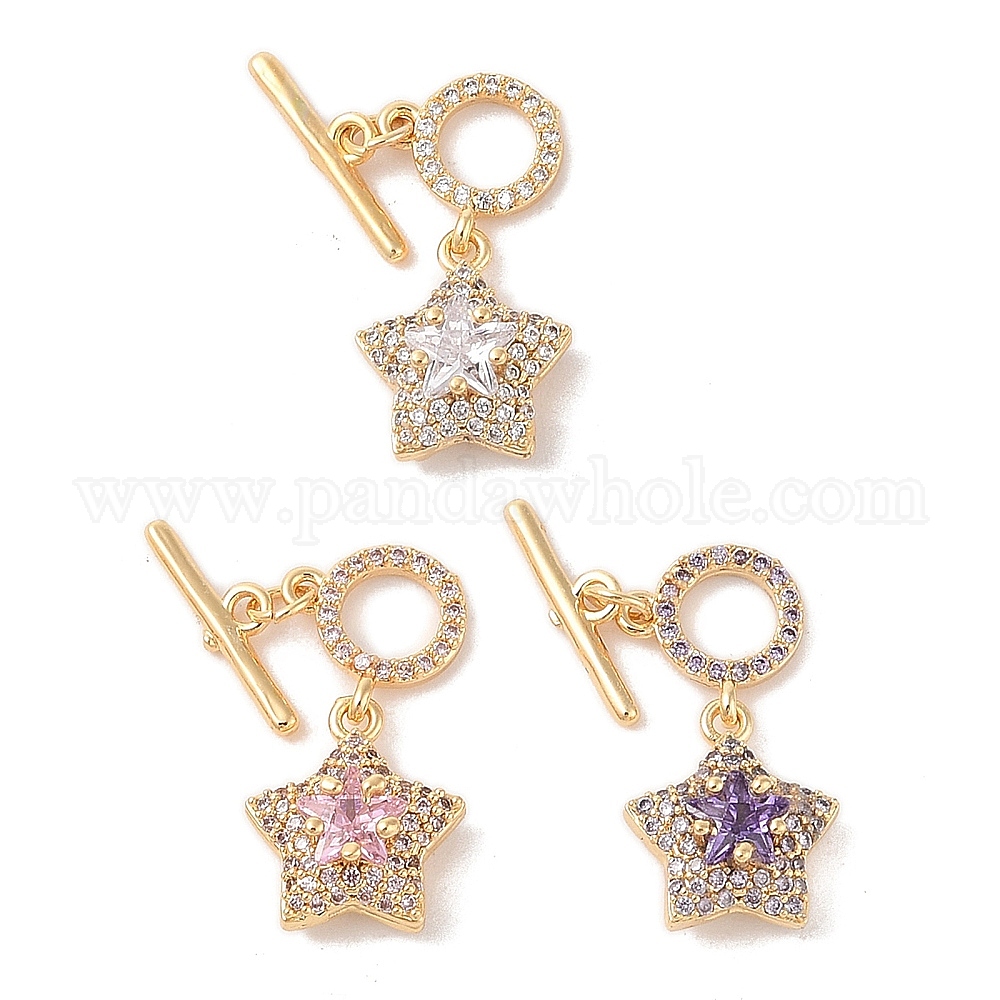 Золотистые латунные застежки-кнопки с микропаве и прозрачным фианитом, со стеклом, звезда