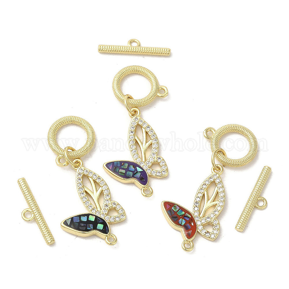 Латунные застежки-молнии из прозрачного кубического циркония, с эмалью и ракушкой, долговечный, без свинца и без кадмия, реальный 18 k позолоченный, бабочка