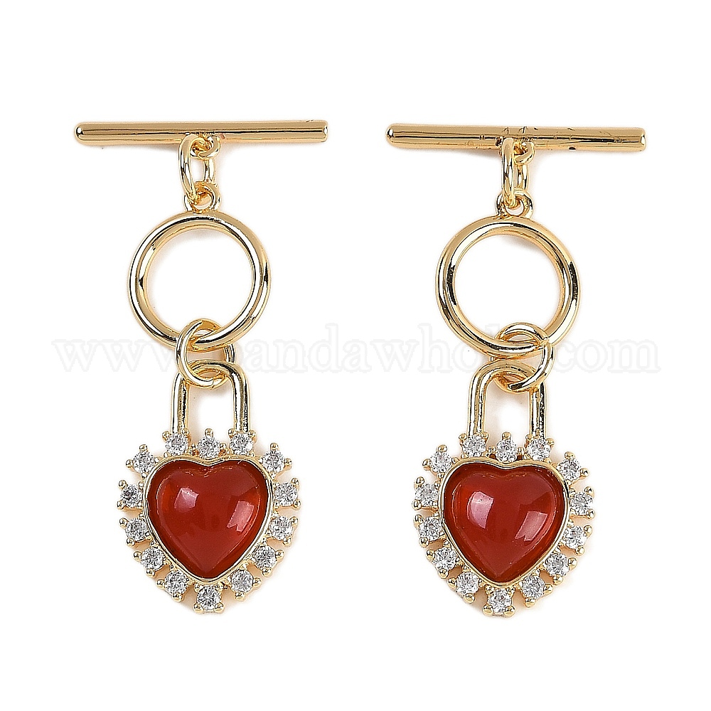 Застежки-тоггл из натурального сердолика, без кадмия, без никеля и без свинца, с латунным микропаве, фурнитура из прозрачного кубического циркония, сердце