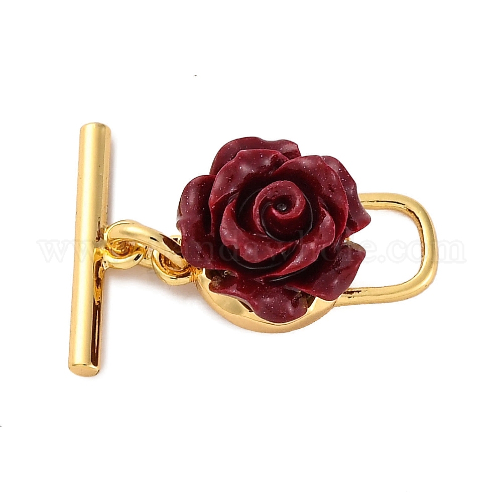 Застежки-тогглы с цветком киновари, с латунной фурнитурой , без кадмия, без никеля и без свинца, цветок