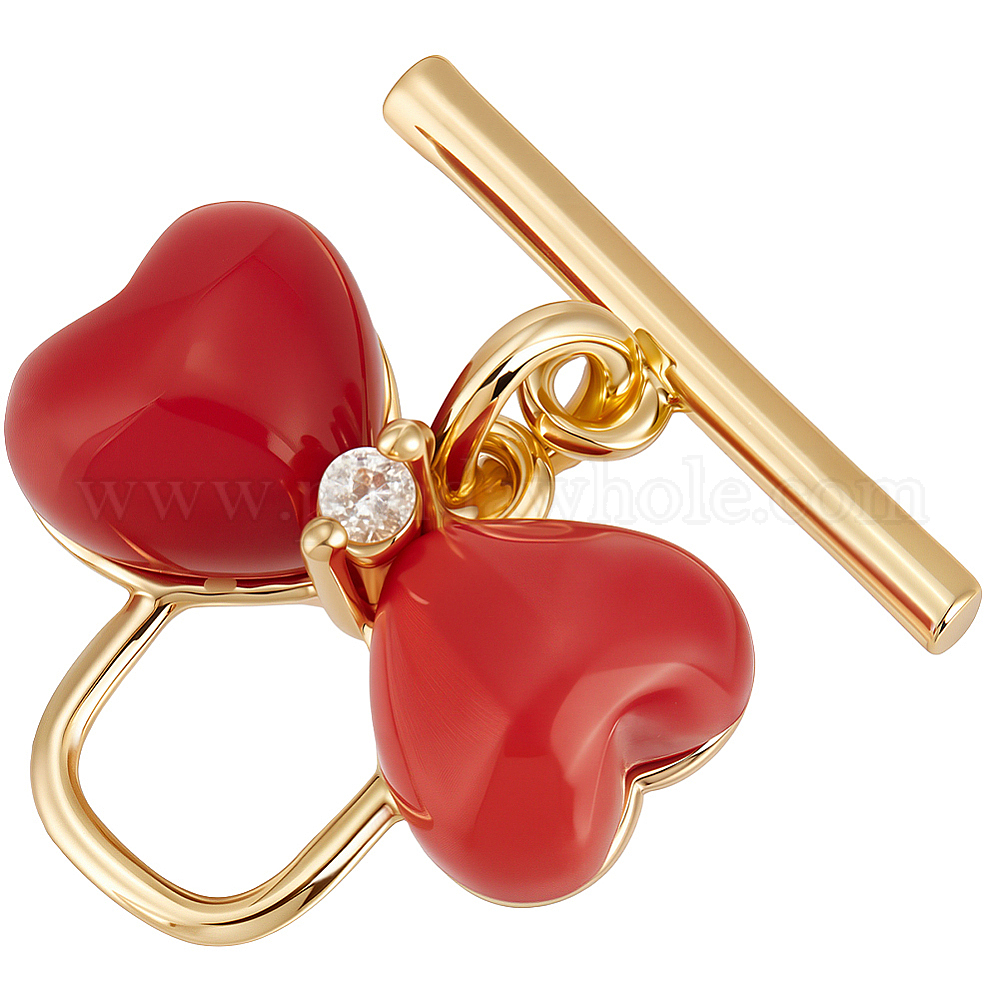• Настоящее золото 18K 6 шт. застежки-тоглы из смолы, с латунным микропаве, фурнитура из прозрачного кубического циркония, бантом, реальный 18 k позолоченный, o застежки: 10x12x4.5мм, бар: 12.5x3.5x1.5 mm, отверстие : 1 мм