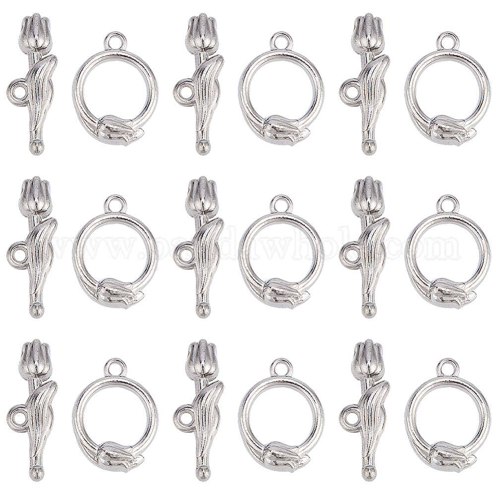 • Нержавеющая Сталь Цвет 10 шт. 304 застежки-переключатели из нержавеющей стали, цветок, цвет нержавеющей стали, цветочное кольцо: 17.5x13x3.5мм, отверстие : 1.6 мм, бар: 22x8x4 mm, отверстие : 1.6 мм