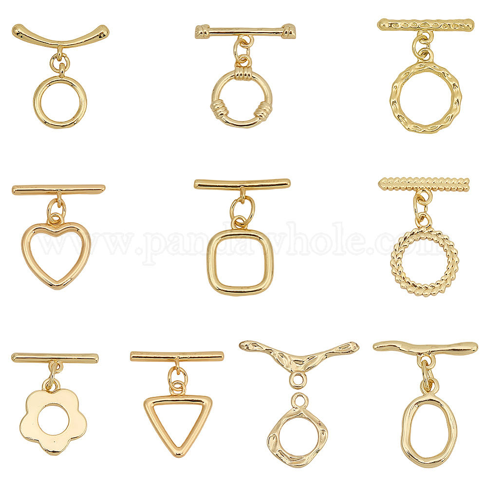 • Настоящее золото 18K 10 шт. 10 стили стойки с латунными застежками-переключателями, разнообразные, реальный 18 k позолоченный, 13~20x10.5~15.5x1.5~3 мм, отверстие : 1~2 мм, 1 шт / стиль