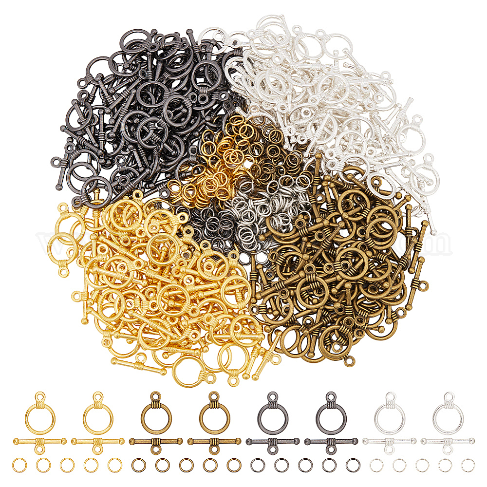 Сплавочные застежка тоггл тибетского стиля, с железными открытыми кольцами