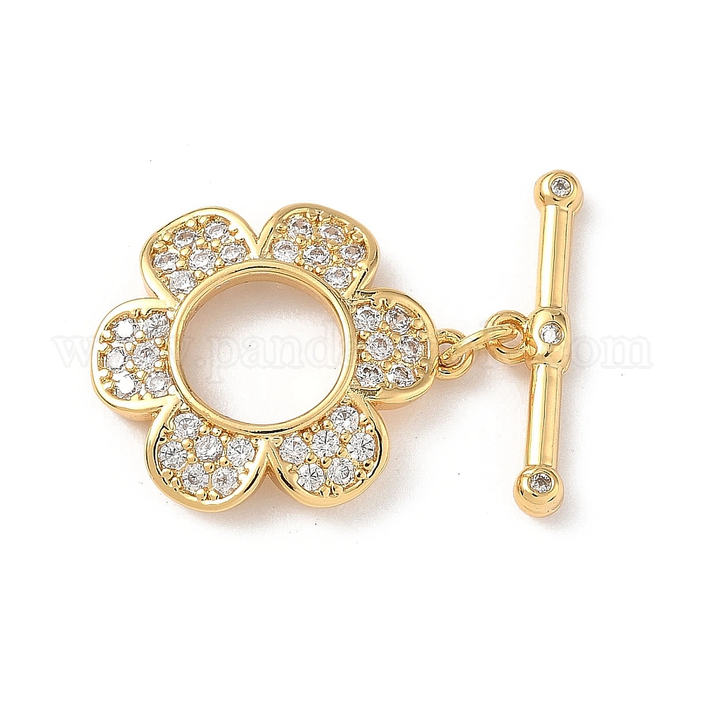 • Настоящее золото 18K Латунные застежки-молнии из прозрачного кубического циркония, цветок, без никеля , реальный 18 k позолоченный, 26 мм