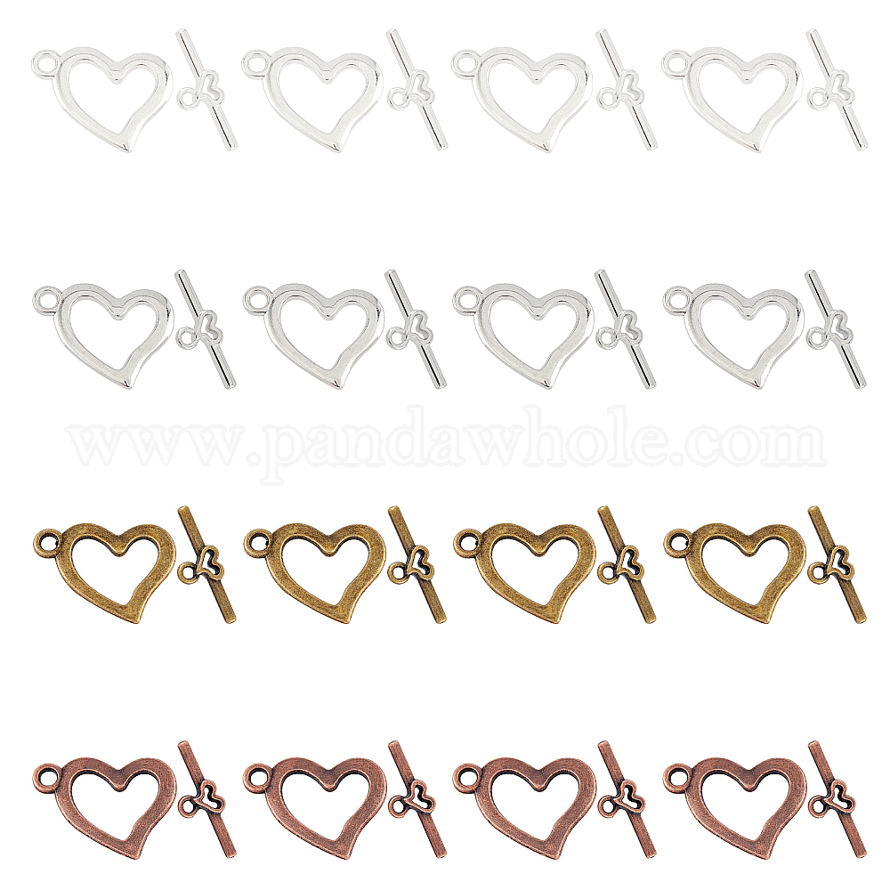 застежки из сплава: сердце: ширина около 15 мм, 19 мм длиной, отверстия: 1.8 мм; бар: 9 мм, 22 мм длиной, отверстие: 1.8 мм; 4 цвета, 20 комплектов / цвет, 80 комплекты / коробка;