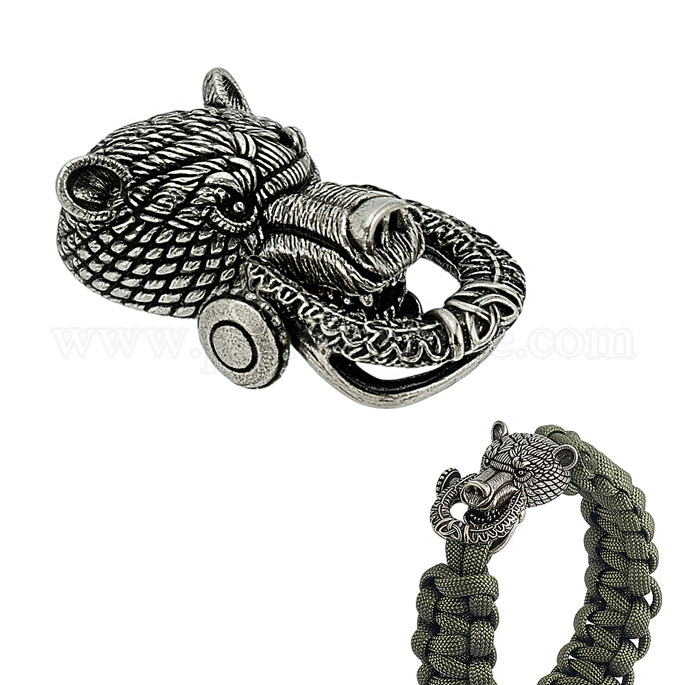 • Античное Серебро Латунные застежки-карабины, голова медведя, античное серебро, 41.5x26.5x16 мм