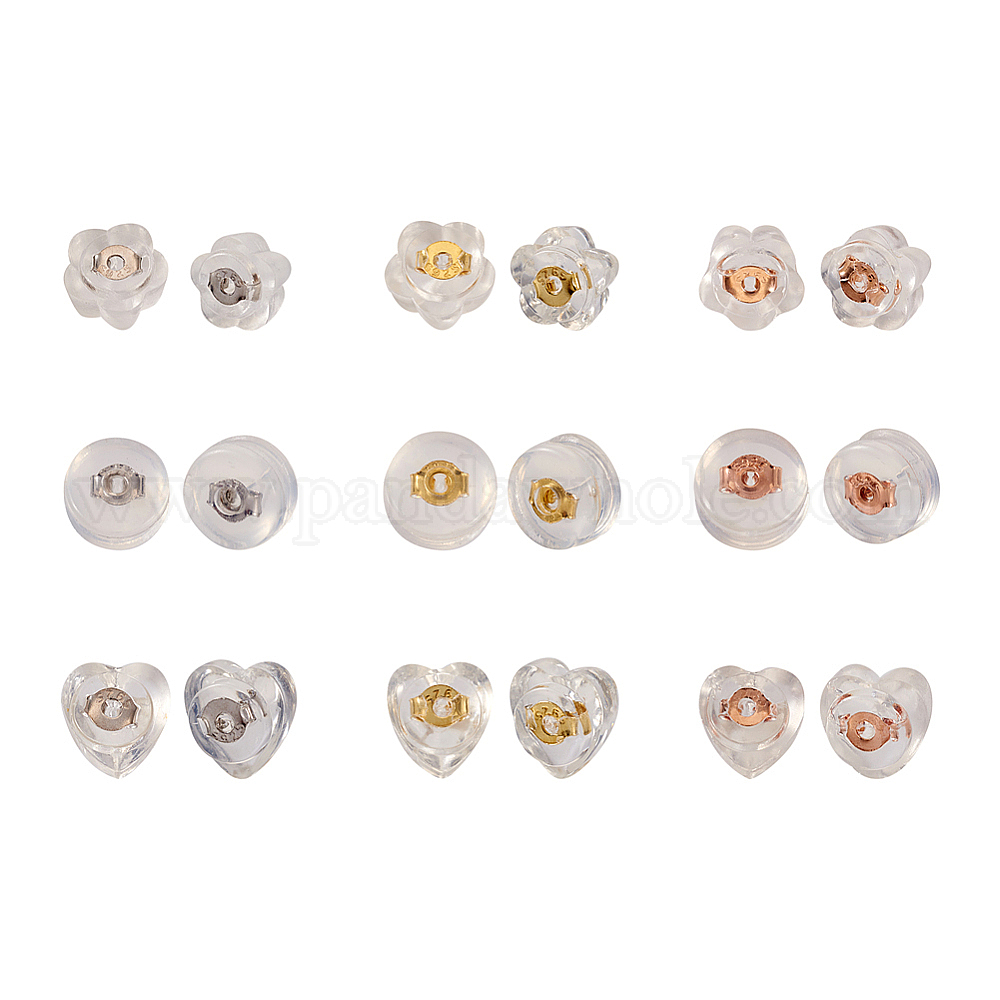 силиконовые ушные гайки с 925 фурнитурой из стерлингового серебра сердце: 6x5.5x4мм, отверстие : 0.6 мм, 3 пары / цвет, 3 цветов, 9 пары;