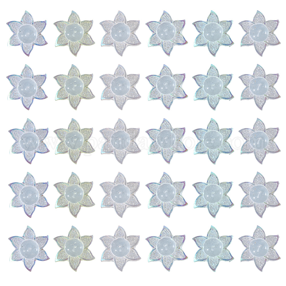 цветок: около 11 мм в ширину, 12.5 мм длиной, толщиной 1.7~4.5 мм , отверстие : 0.7 мм, 5 шт / цвет, 6 цветов, 30шт;