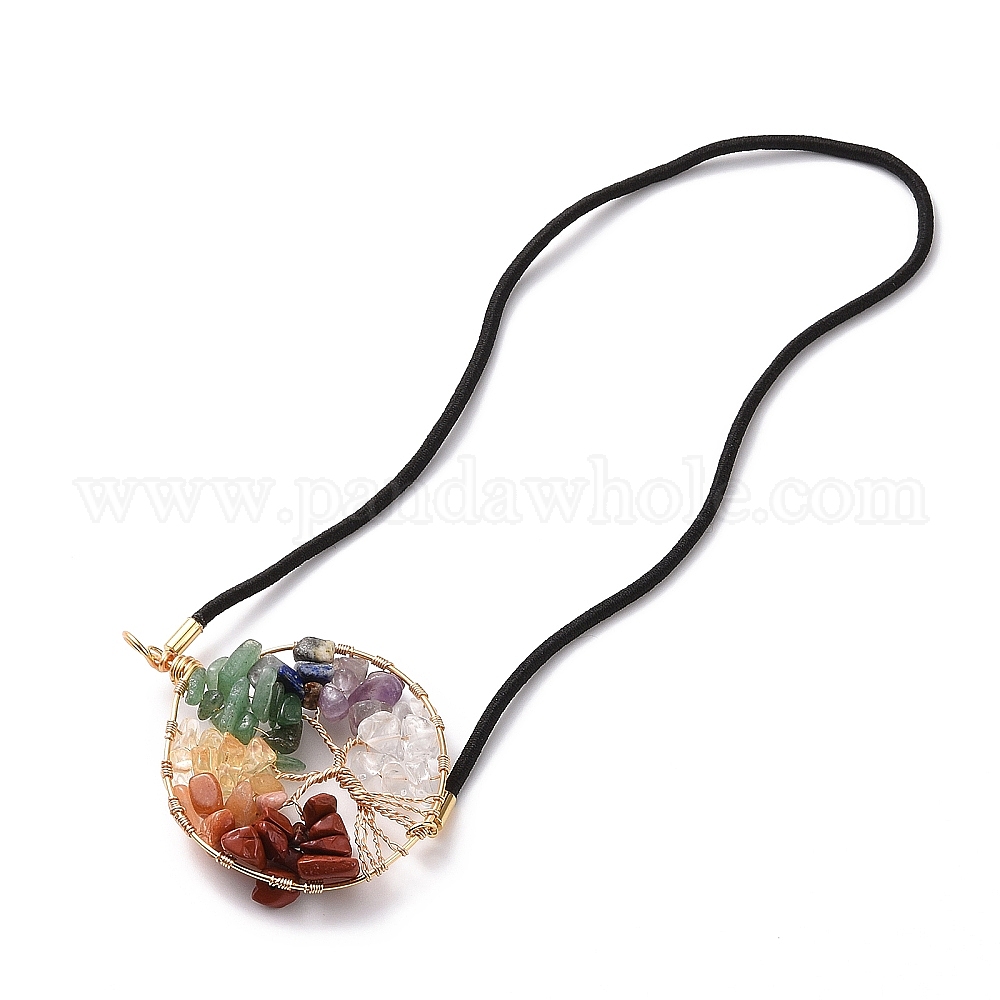 4шт эластичные закладки, дерево жизни упало натуральный драгоценный камень маркер для книг из бисера, плоско-круглые, с 1 прямоугольные бархатные мешочки ПК