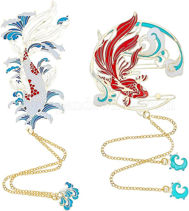 2шт 2 стиль сплав эмаль подвеска закладки, закладка из железной цепи, причудливый карп (02EG34)