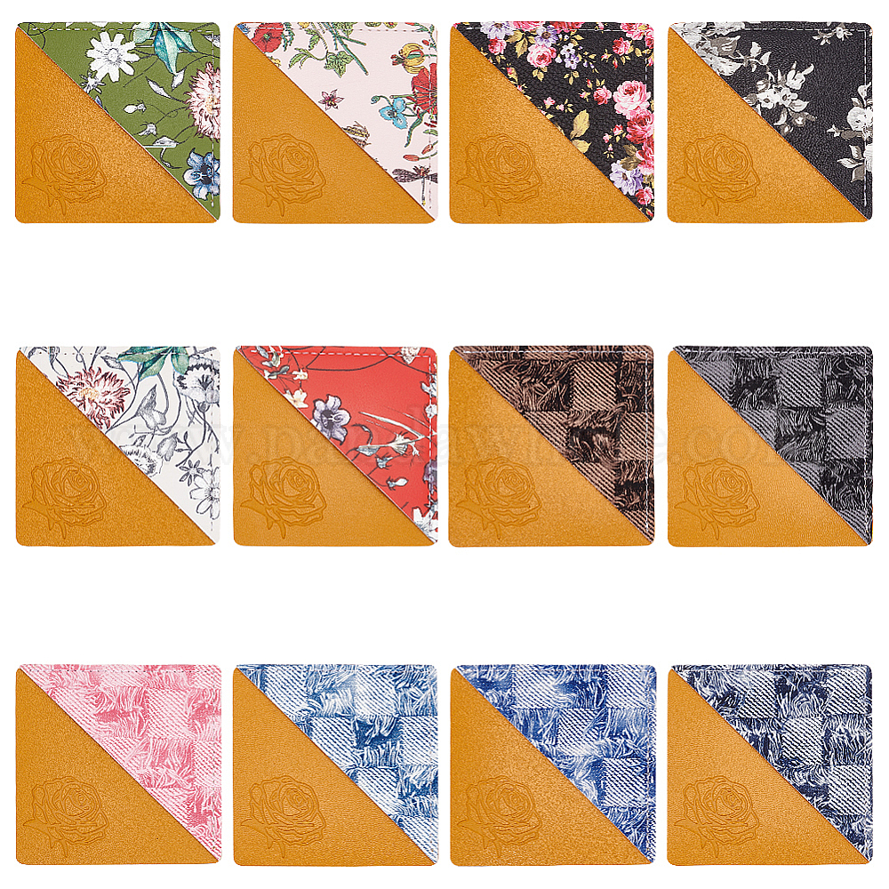 12 шт. 12 стильные уголки из искусственной кожи с принтом, книжные угловые охранники, протекторы для ноутбуков, квадратный с клетчатым/цветочным узором (02HR1A)