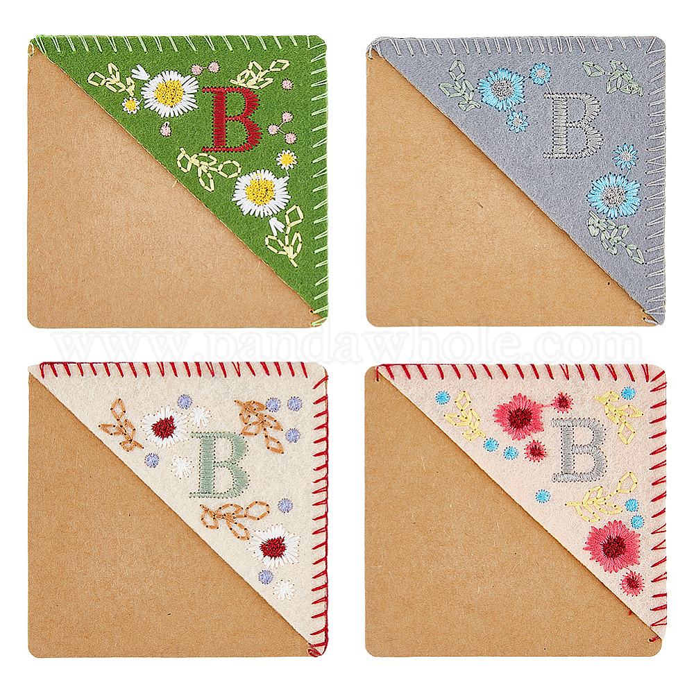 4шт 4 стиль фетровые вышитые закладки, угловой маркер страницы, с крафт-бумагой, тема сезона, квадрат с буквой