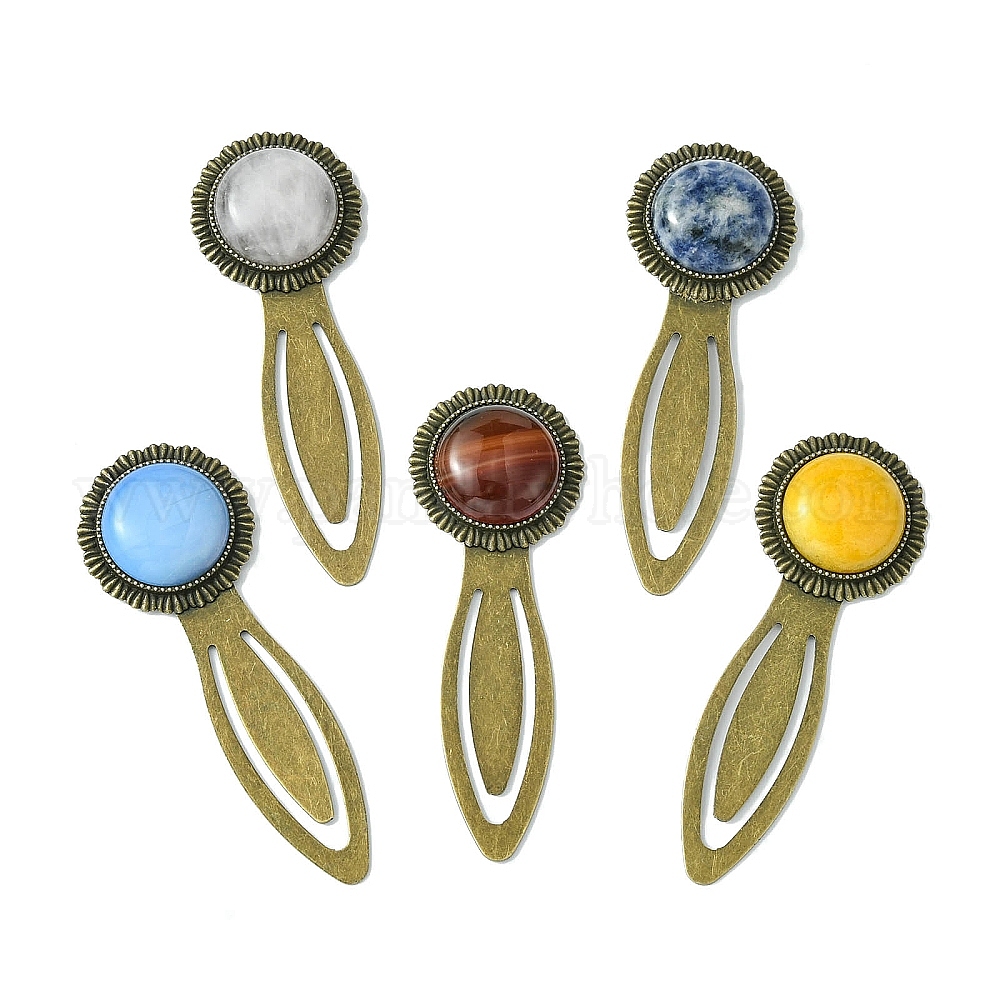 Смешанные круглые закладки из натуральных и синтетических драгоценных камней, зажимы для маркировки книг из сплава