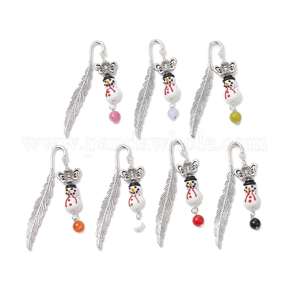 7 шт 7 цвета рождественские снеговики лэмпворк и бабочка сплав подвеска закладки, закладка из натурального драгоценного камня с крючком из сплава