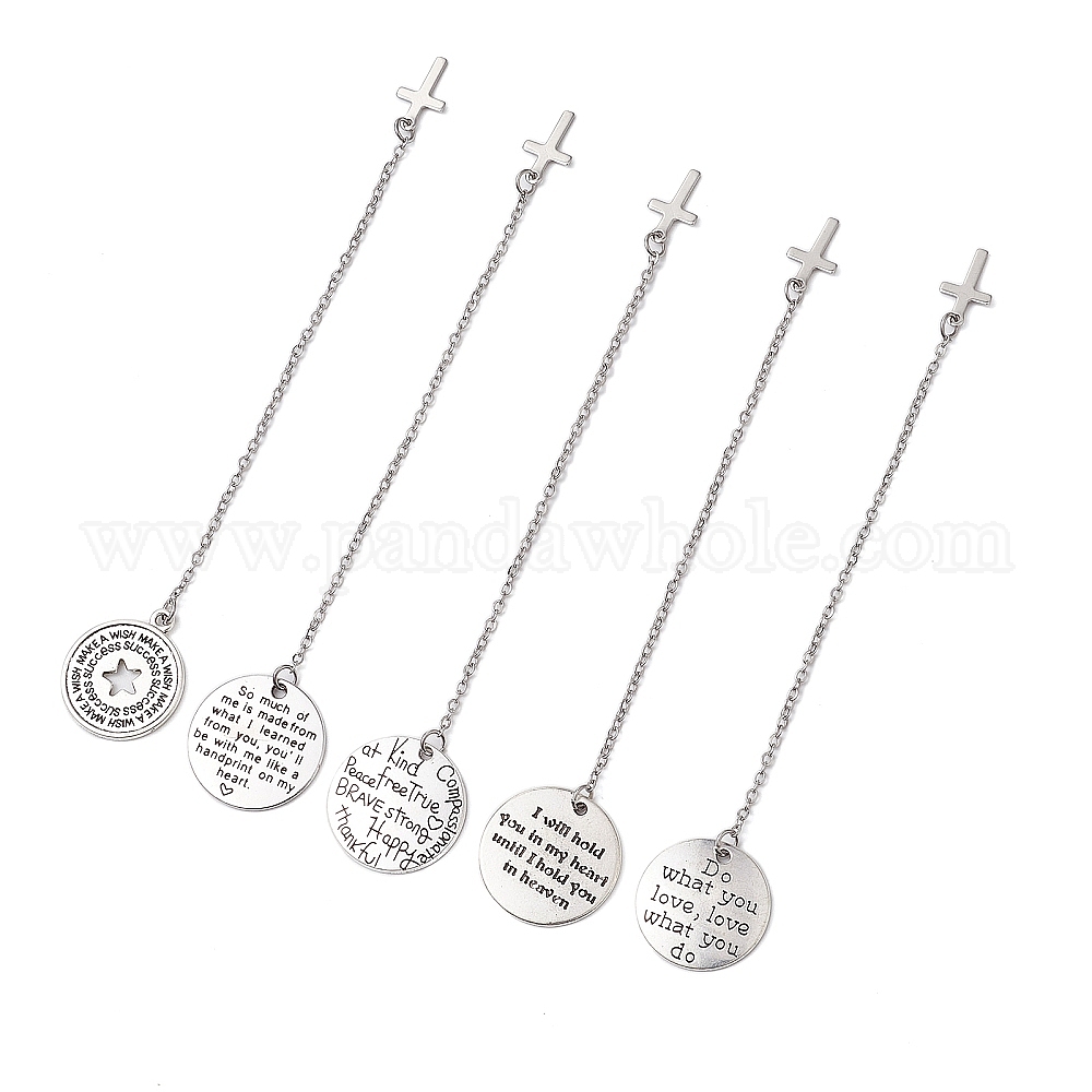 • Античный Серебристый & Цвет Нержавеющей Стали Тибетский стиль сплав и 304 нержавеющая сталь подвески крючки закладки, плоский круглый крест, старинное серебро и цвет нержавеющей стали, 145 мм
