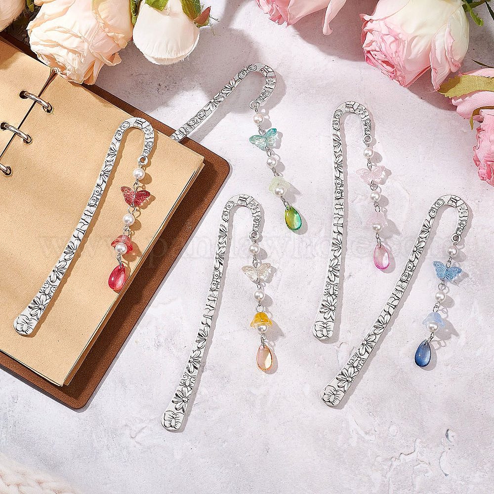 5 шт 5 цвета стекло и ракушка жемчужная подвеска закладка, закладка крючком из сплава, бабочка и цветок и слеза