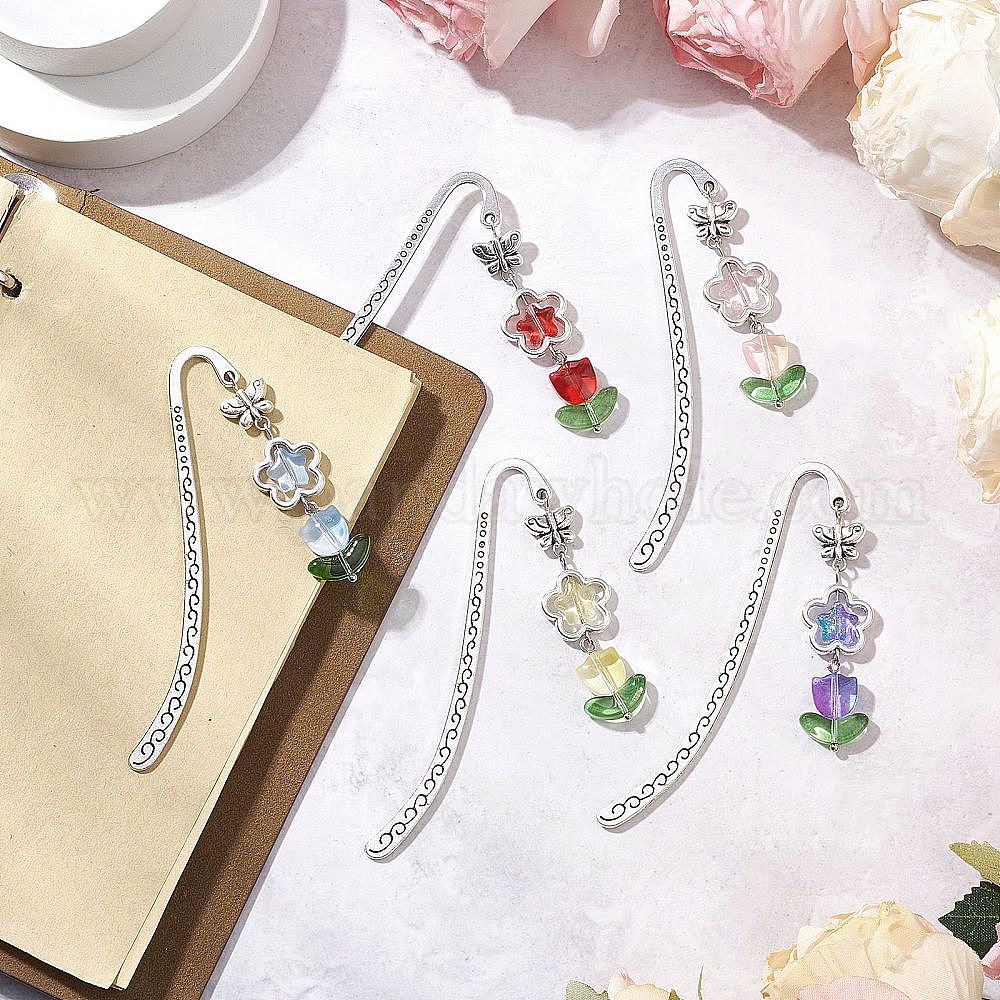 Стеклянные тюльпаны-подвески закладки, закладки с крючками из сплава (031GBW)