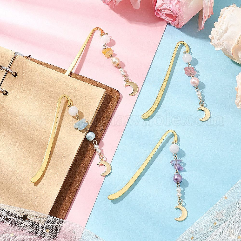 Подвески-закладки с подвесками в виде луны из натурального белого нефрита, топаза, нефрита, аквамарина, аметрина, вишневого кварца и нержавеющей стали, закладки с крючками из сплава